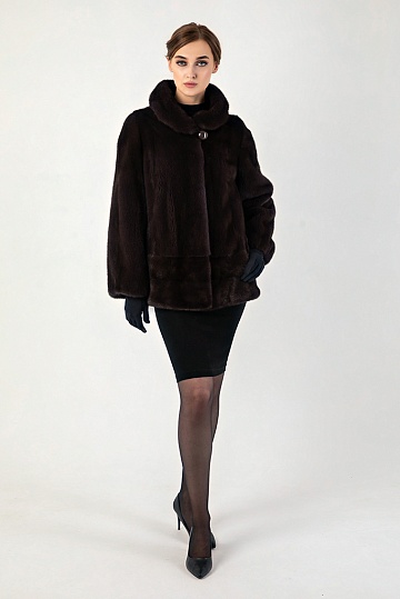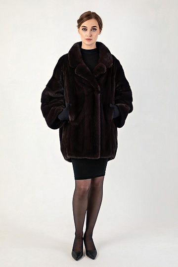 Короткая шуба из норки SAGA вельвет, отделка соболь 605-87