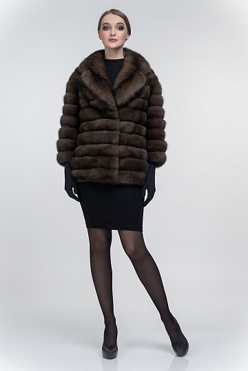 Короткая шуба из норки SAGA вельвет отделка соболь баргузинский № 493-60