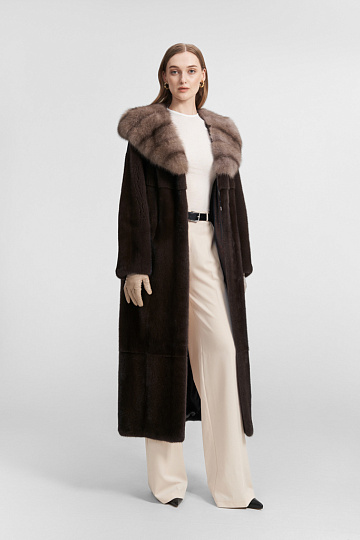 Шуба из норки с отделкой из соболя №639-76