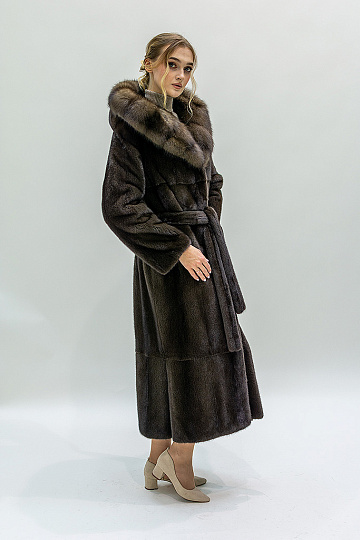 Шуба из норки SAGA вельвет, отделка соболь баргузинский № 599