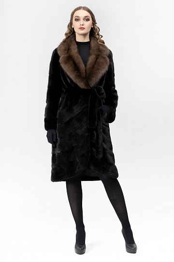 Шуба из норки SAGA вельвет, отделка соболь баргузинский № 570