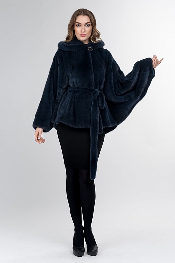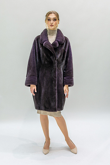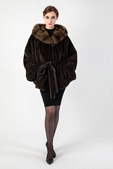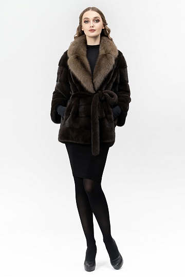 Короткая шуба из норки SAGA вельвет, отделка соболь 605-87