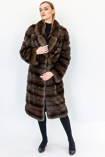 Короткая шуба из норки SAGA вельвет, отделка соболь 605-87