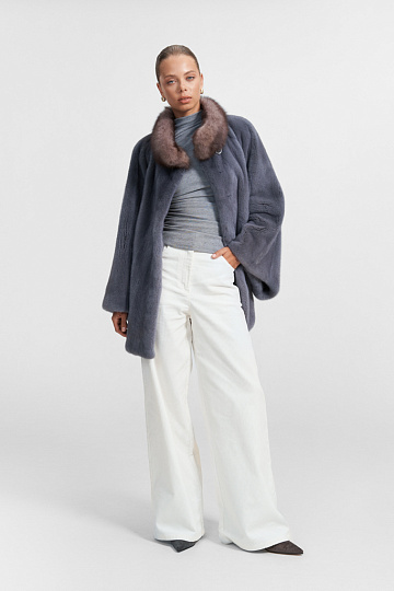 Короткая шуба из норки с соболем №421-6