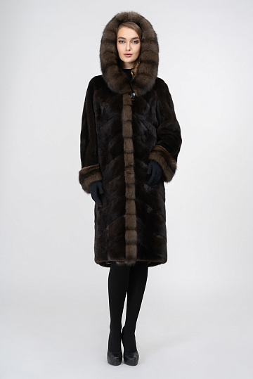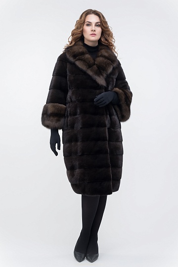 Шуба из норки SAGA вельвет, отделка соболь баргузинский № 599